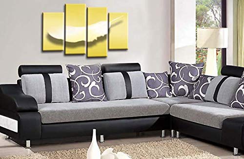 LR Abstract Wall Art Print Yellow Grey White Feather Love Framed Split Canvas Picture Ready to Hang