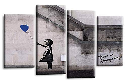 LR Banksy Heart Art Print Blue Grey Balloon Girl Framed Canvas Split Wall Picture Ready to Hang