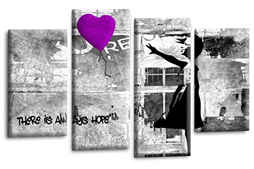 LR Banksy Heart Art Print Purple Grey Balloon Girl Framed Canvas Split Wall Picture Ready to Hang