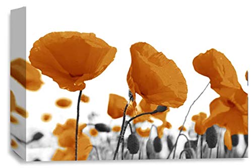 LR Floral Poppy Rose Wall Art Picture Orange White Landscape Flower Picture Framed Print Ready to Hang