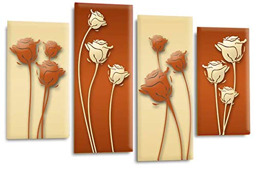 LR Floral Rose Canvas Art Picture Brown Cream Flower Love Framed Split Panel Print