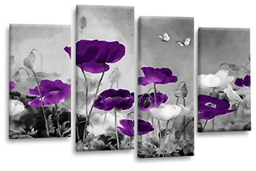 LR Floral Wall Art Grey Purple Chinese Poppy Flower Canvas Split Picture Love Landscape Print
