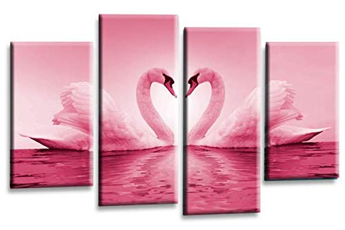 LR Love Swans Wall Art Picture Pink Cream Heart Home Framed Split Panel Canvas Print