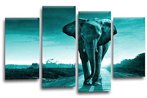 LR Sunset Elephant Wall Art Picture Teal Grey Black Africa Framed Canvas Print Split Panel Ready to Hang