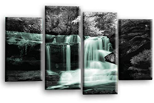 LR Waterfall Wall Art Picture Forest Duck Egg Grey White Autumn Framed Canvas Split Panel Print
